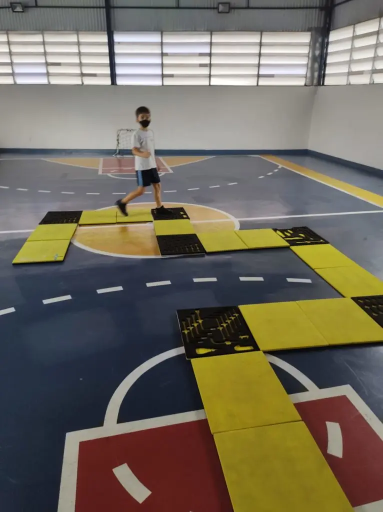 Noção espacial ou orientação espacial é a capacidade que o indivíduo tem de situar-se e orientar-se, em relação aos objetos, às pessoas e o seu próprio corpo em um determinado espaço. É saber localizar o que está à direita ou à esquerda; à frente ou atrás; acima ou abaixo de si, ou ainda, um objeto em relação a outro. É ter noção de longe, perto, alto, baixo, longo, curto (ASSUNÇÃO; COELHO, 1996, p.91-96)Essa noção espacial é desenvolvida nas crianças a partir da experimentação. Sendo que a referência principal da criança é o próprio corpo.Com o objetivo de auxiliar as crianças a desenvolver noções de direção (direita e esquerda) e localizar no espaço objetos e pessoas que se encontram ao seu redor, as crianças do 3° ano da professora Débora, brincaram de labirinto, onde cada participante antes de virar para direita ou esquerda, teve que falar em voz alta sua direção antes de virar e andar. Foi muito divertido e as crianças adoraram esta atividade.