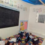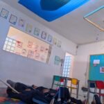No percurso criativo “Um mundo de gigantes”, o jardim 3 A da prô Larissa, está conhecendo animais gigantes. Conheceram três animais, a baleia-azul, o elefante-da-savana e o albatroz-gigante. Para contextualizar e criar novas narrativas de faz de conta, a professora trouxe para dentro da sala um cenário de fundo do mar.